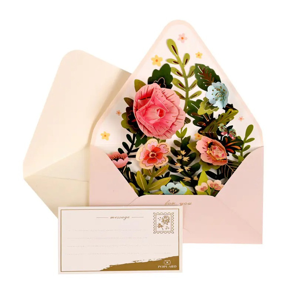 Луксозна 3D картичка "Букет Цветя" с плик и карта за пожелание.
