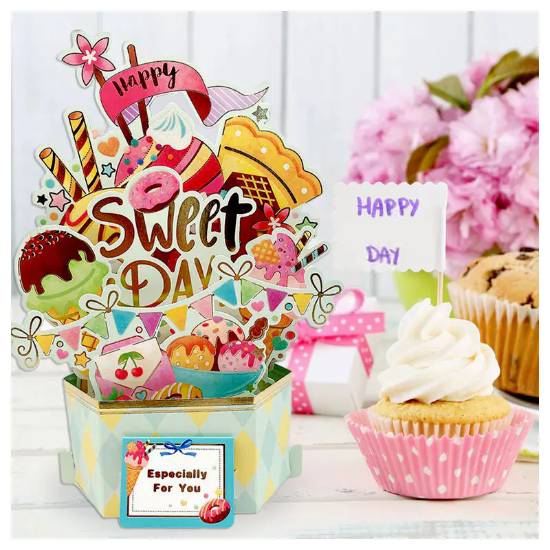 Луксозна 3D картичка на поставка - Букет Сладост