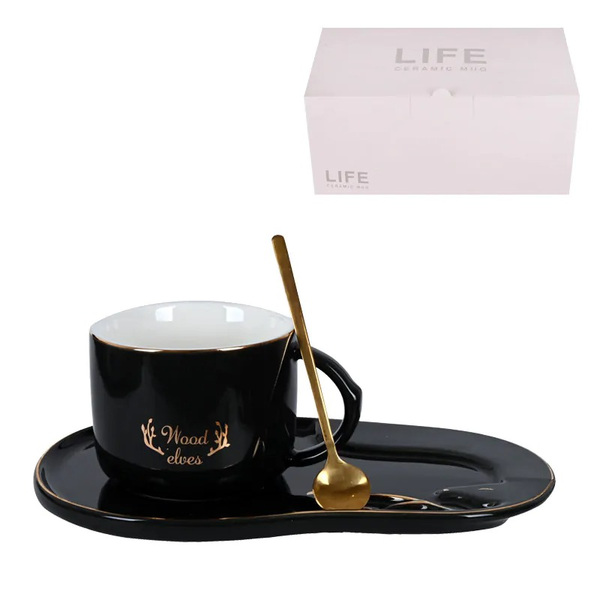 Луксозна чаша с чинийка и лъжичка /керамика/.