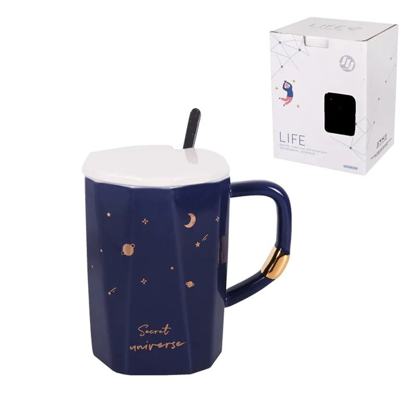 Луксозна чаша с капак и лъжичка /тъмно син/