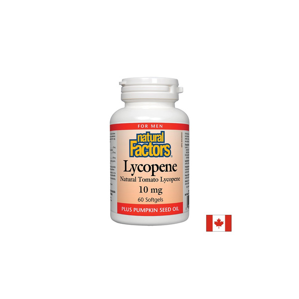 Лесните за преглъщане софтгел капсули на Natural Factors съдържат 10 мг от важния каротеноид ликопен. Той е извлечен от домати, отговорен е за червения цвят и е много по-мощно средство за справяне със свободните радикали в сравнение с бета каротена. Той е мощен антиоксидант и предотвратява увреждането на клетъчните структури в човешкото тяло. Най-новите научни изследвания показват, че ликопенът може да се окаже важно средство за мъжете, които искат да се погрижат за здравето на простатата и за тези, които искат да се предпазят от ултравиолетовите лъчи.