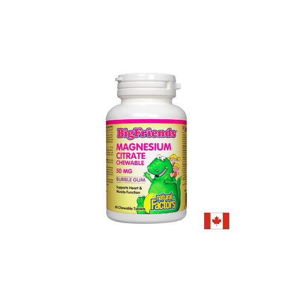 Магнезий цитрат за деца на канадската компания Natural Factors е високоефективен натурален продукт допринасящ за нормалното функциониране на детския организъм и нервната система. Формулата за деца е лесна и приятна за прием – под формата на дъвчащи таблетки с вкус на дъвка – подпомагаща здравословния растеж и развитие.