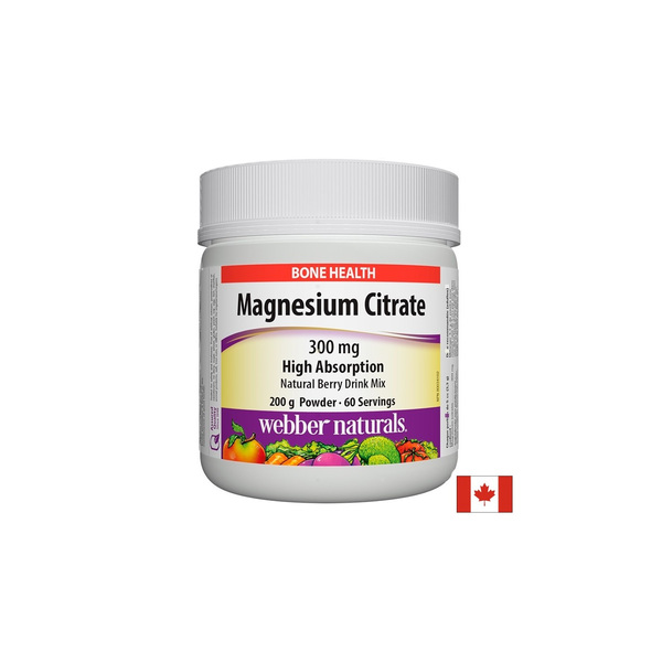 Магнезий (Цитрат) с висока абсорбция на канадската компания Webber Naturals допринася за поддържане на нормалното състояние на костите и зъбите, тъканите и мускулната функция.
