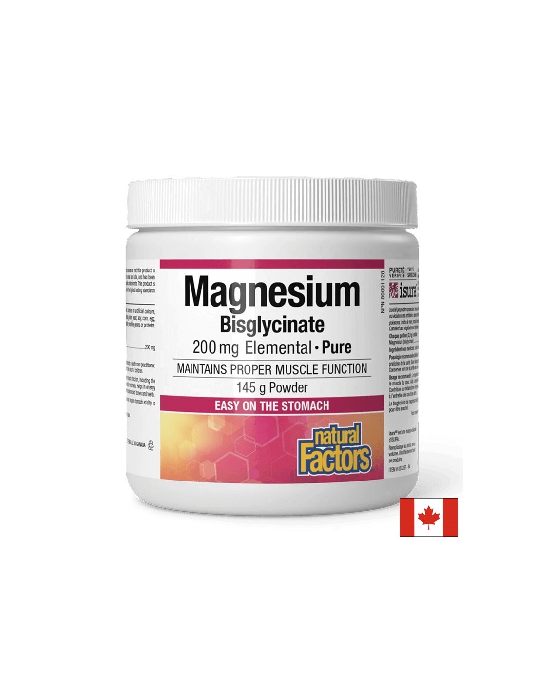 Магнезий (бисглицинат) на Natural Factors е с висока бионаличност и не изисква стомашна киселина за абсорбция. Усвоява се лесно и не причинява стомашен дискомфорт или диария. Продуктът не съдържа глутен и ГМО и е подходящ за вегани и вегетарианци. Предлага се в удобна прахообразна форма, която лесно се разтваря във вода или други течности. Една дневна доза (1 мерителна лъжичка / 2,9 g) осигурява необходимото количество магнезий за подпомагане на мускулната функция и енергийния метаболизъм.