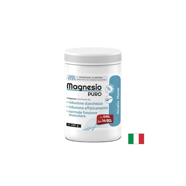 SanaVita Magnesio Puro е хранителна добавка от италианската компания Paladin Pharma на базата на чист магнезиев карбонат, във прахообразна форма. Този минерал допринася за намаляване на умората и отпадналостта, както и за поддържане на енергийния метаболизъм. Също така подпомага нормалната мускулна функция и нервната система.