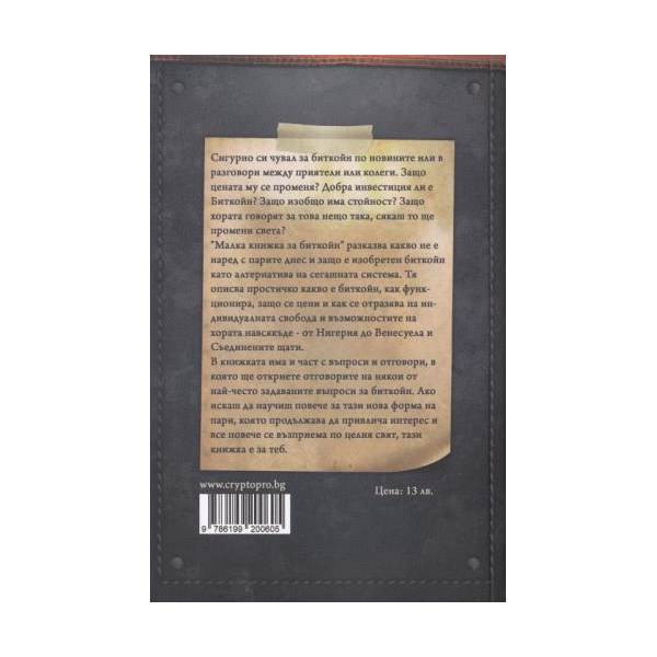 „Малка книжка за биткойн“ е най-достъпното кратко четиво за всеки, който с искрено любопитство иска да научи какво не е наред с парите и защо биткойн е алтернативата на сегашната парична система.