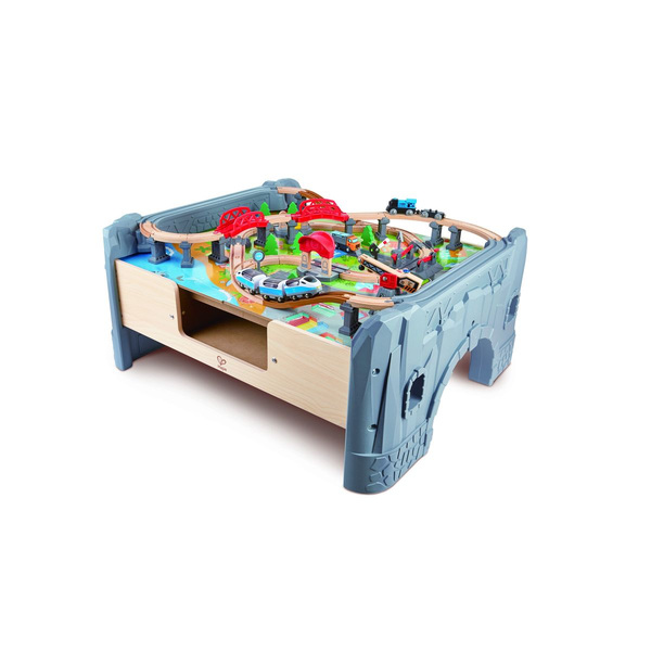 Забавна маса за игра, която ще ви отведе в чудни светове. Масата е с красив дизайн и допълнително отделение в което може да приберете аксесоарите. Включва красива илюстрирана графика на паркове, езера, планини и цял град. Включва локомотивче, което се захранва от батерия, пътнически влак, товарен кран и товарен камион. Масата е изработена oт кaчeствeн дъpвeн мaтepиaл и пластмаса, при спазване на всички изисквания за безопасност. Развива фините двигателни умения и въображението. Ролевата игра обединява децата да играят в група по определени правила. Размери: 91 х 70 х 40 см