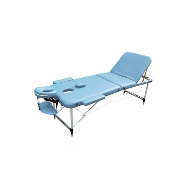Трисекторна алуминиева масажна маса, подходяща за масажи, козметични процедури и физиотерапия. Стабилна конструкция със заоблени и подсилени ъгли осигурява безопасност и комфорт при работа.
