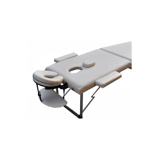 Професионална двусекторна масажна маса с алуминиева рамка, изключително подходяща за физиотерапия, козметични процедури и масаж. Компактна и удобна, тя е идеално решение за професионални салони и мобилни терапевти.