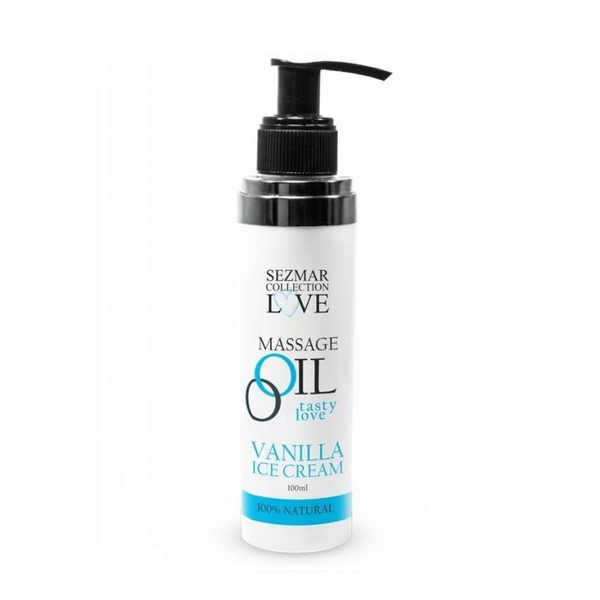 Интимно масло 100% натурално с неустоим аромат на ванилов сладолед. Така копринено на допир, че ръцете ви сами ще се плъзгат върху кожата на любимия ви.. Начин на употреба: оставете се в ръцете на Вашия партньор и фантазията, за да се насладите на страстен масаж! Нанесете след душ, върху тялото и масажиране ерогенните зони. Лесно се абсорбира от кожата и оставя незабравими спомени! Поставете малко количество в ръката си или директно върху желаното място на тялото и нежно масажирайте. INCI: SESAME OIL, CACAO BUTTER, VANILLA ICE CREAM FLAVOUR, BEESWAX