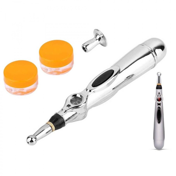 Масажор писалка за акупунктурна електростимулация - един наистина удивителен електрически масажор за стимулациятя на различни части от Вашето тяло. Ефектите от неговото ползване са много и Вие ще усетите разликата изключително бързо. Той е лек, практичен и много удобен. Има размерите и формата на една обикновенна писалка, така че можете да го вземете на всякъде със себе си като просто го поставите в чантата си. Подходящ за мъже и за жени. Наслаждайвате се на един по-лек и по-хубав живот! Притежава различни степени и глави, които можете да сменяте според това в кои зони ще масажирате. Включени са и две лечебни кремчета, така че масажорът притежава и терапевтичен ефект.