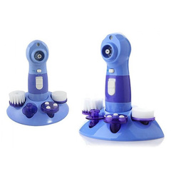 4 сменяеми глави: четка за пилинг на лице, гъба за измиване и масажиране, глава всмукателна чашка и масажиращ накрайник
