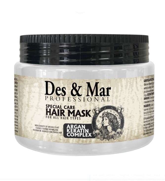 Маска грижа за косата с арган и кератинов комплекс, за пълно възстановяване на косата. Предава блясък и жизненост на косата. Подхранва от корена до връхчетата овлажнява косата ви и й предава по-ярък и гладък вид.