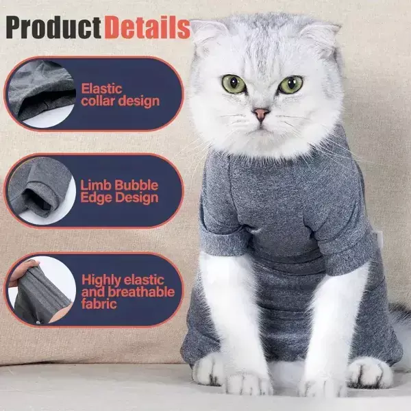 Обхваща изцяло тялото на животното и предпазва проблемните зони от зацапване и облизване.