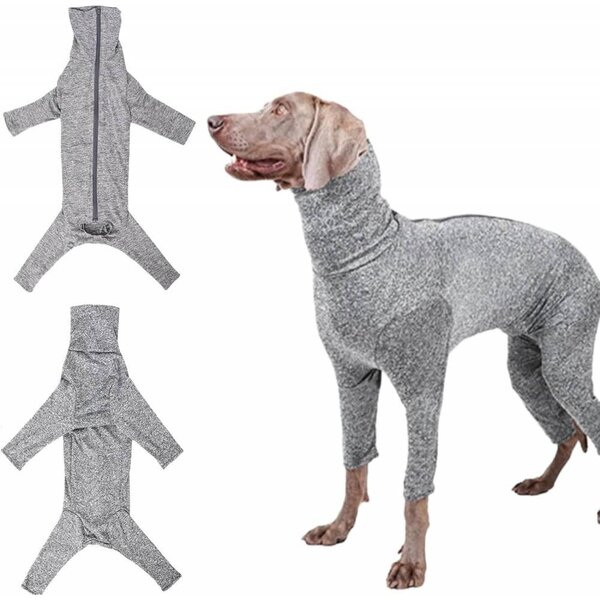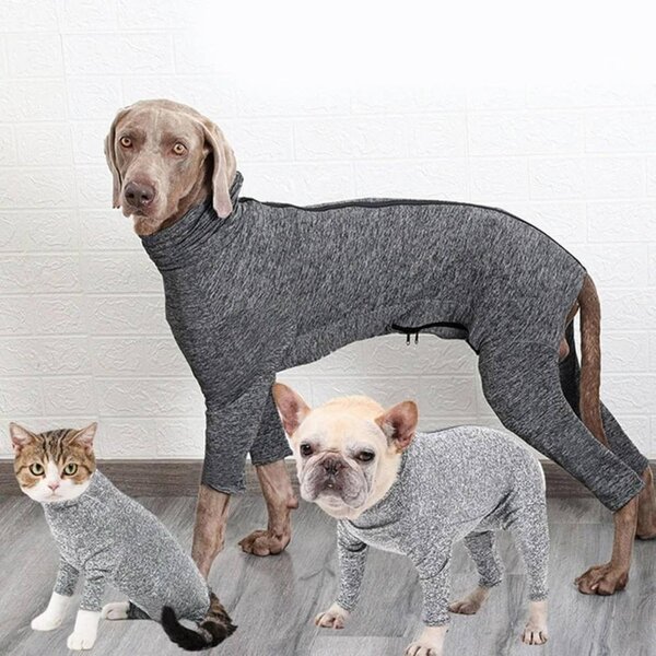 Обхваща изцяло тялото на животното и предпазва проблемните зони от зацапване и облизване.
