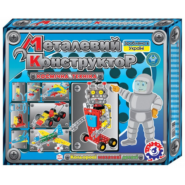 метален конструктор 30х25х4 с болтове гайки инструменти и гуми за направа на космическа техника 8 модела