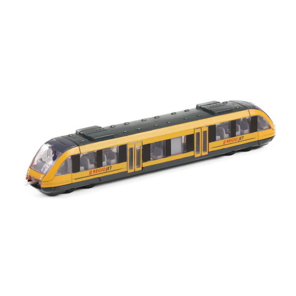 Истински регионален влак RegioJet с дължина 17 см не може да липсва в нито една стая на феновете на влаковете! Подобен влак пътува до Словакия и свързва Братислава и Комарно. Този невероятен метален модел влак е идеален за подарък или като колекционерска част! Когато притежавате няколко броя, те могат да бъдат закачени един за друг. Локомотивът се движи свободно и не са му необходими релси. Размери на опаковка: 21.5×9.5×4 см Възраст: 3+