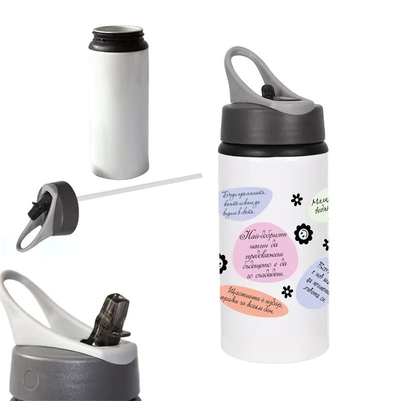 Метална бутилка "Щастието е ..." /600 милилитра/.