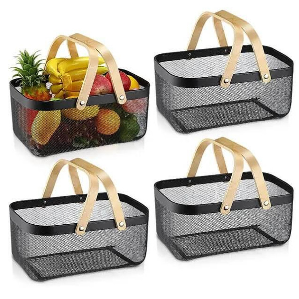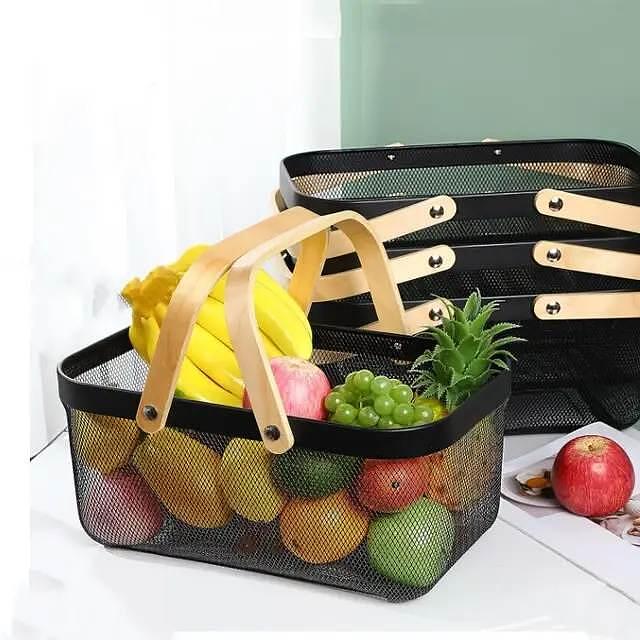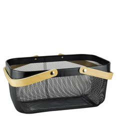 Представяме ви тази черна, метална кошница с дървени дръжки за съхранение. Идеална за вашият дом или градина. Изработена от висококачествен метал и удобни дървени дръжки.Добавете уют и красота във вашето пространство с тази стилна метална кошница. Размери: 32х24х11 см.