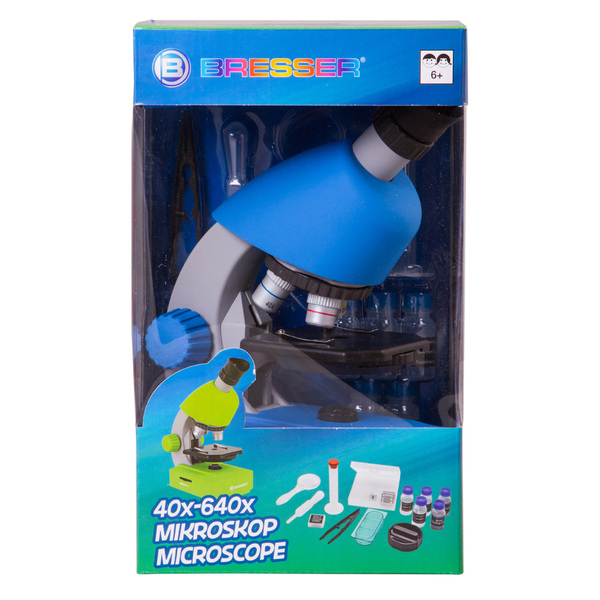 <p>Bresser Junior 40–640x kid’s microscope is the best choice for the first microscope for a curious kid. This simply controlled instrument with vibrant body will engage your kid for quite a while. The microscope is very easy to use; it allows for studying transparent microscope samples, and also comes with an interesting experiment kit. A kid will be able to observe ready-to-use microscope slides and watch Artemia’s growth in a hatchery. The kit also includes special tools for independent preparation of microscope samples. All this will let your child feel like a real scientist!</p> <p>Bresser Junior 40–640x Microscope is equipped with three objectives lenses, which allow for 40–640x magnification range. To change the magnification, you don’t have to pause your work – you can quickly switch objectives using the revolving nosepiece. The unique feature of this model is its sliding two-position eyepiece, which replaces two eyepieces with an increase of 10 and 16-fold – and it is really easy to use. Your kid won’t need to change eyepieces; therefore they won’t get lost.</p> <p>To observe a fly's wing or onion cells, a thin transparent sample should be placed on the round stage. Convenient clips will securely hold it in place – you won't lose it out of sight after a careless movement. The light emitted from LED diodes (located below the stage) passes through the sample, creating the magnified image. The adjustable brightness is a very convenient feature – you can make the illumination more intensive for thick and less transparent samples, and do otherwise when observing very thin and very transparent sections. The LED illumination is powered by batteries, meaning the microscope can be used not just at home and at school, but also outdoors.</p> <p>Bresser Junior 40–640x Microscope comes with experiment kit, which has everything needed to make first observations frustration-free and exciting. You can begin with observing ready-to-use microscope samples included in the kit and then move on to creating your own microscope slides. In the box you will find a set of helpful instruments and a detailed user guide with all required information on microscopes and observations as well as descriptions of the most interesting experiments.</p> <p><strong>Features:</strong> </p> <ul> <li>Kid’s microscope with vibrant body color </li> <li>LED lighting </li> <li>Illumination intensity adjustment </li> <li>Durable and lightweight body </li> <li>Experiment kit in the package </li> </ul> <p><strong>The kit includes:</strong> </p> <ul> <li>Bresser Junior 40–640x Microscope </li> <li>3 ready-to-use specimens </li> <li>8 blank slides </li> <li>8 cover slips </li> <li>8 stickers for slides </li> <li>Flask with yeast </li> <li>Flask with brine shrimp </li> <li>Hatchery for Artemia (brine shrimp) </li> <li>3 flasks </li> <li>Microtome </li> <li>Forceps </li> <li>Dropper </li> <li>Loupe </li> <li>Measuring cup </li> <li>3 AA batteries </li> <li>User manual</li> </ul><table><tbody><tr><td>Марка</td><td>Bresser GmbH, Germany</td></tr><tr><td>Гаранция</td><td>2 години</td></tr><tr><td>EAN</td><td>4007922033730</td></tr><tr><td>Размер на опаковката (Д x Ш x В)</td><td>28x15x17 cm</td></tr><tr><td>Транспортно тегло</td><td>0.86 kg</td></tr><tr><td>Тип</td><td>светлина/оптичен, биологичен</td></tr><tr><td>Глава</td><td>монокулярен</td></tr><tr><td>Увеличение, x</td><td>40 — 640</td></tr><tr><td>Диапазон на увеличението</td><td>от 200x до 800x</td></tr><tr><td>Окуляри</td><td>WF10x-16x (две позиции)</td></tr><tr><td>Револверна глава</td><td>за 3 обектива</td></tr><tr><td>Характеристики на предметната маса</td><td>с щипки</td></tr><tr><td>Диафрагма</td><td>дискова диафрагма</td></tr><tr><td>Фокусиране</td><td>грубо</td></tr><tr><td>Тяло</td><td>пластмаса</td></tr><tr><td>Осветление</td><td>светодиодно</td></tr><tr><td>Регулиране на яркостта</td><td>yes</td></tr><tr><td>Захранване: батерии/вградени батерии</td><td>3 батерии АА (включени)</td></tr><tr><td>Потребителско ниво</td><td>за деца</td></tr><tr><td>Приложение</td><td>деца (от 3- до 7-годишна възраст)</td></tr><tr><td>Място на осветлението</td><td>долно</td></tr><tr><td>Метод за изследване</td><td>на светлото поле</td></tr><tr><td>Включен е набор за експерименти</td><td>yes</td></tr></tbody></table>