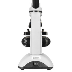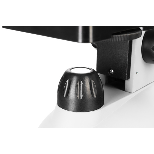 <p>Предметната маса има щипки за задържане на образците и диафрагмен диск с шест отвора за регулиране на светлинния поток. В микроскопа се използва комбинирано светодиодно осветление, което е разположено над и под предметната маса. Това дава възможност за изследване на образци с всякаква степен на прозрачност. Осветлението се захранва чрез стандартни батерии, които са включени в набора.</p>
