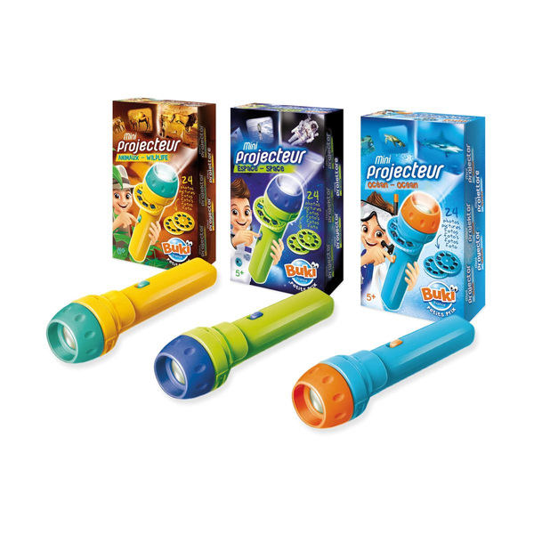 Мини прожектор за показване на красиви снимки на стена или таван. Всеки мини прожектор съдържа по 3 диска с по 8 диапозитива. Има подробни илюстрирани инструкции.