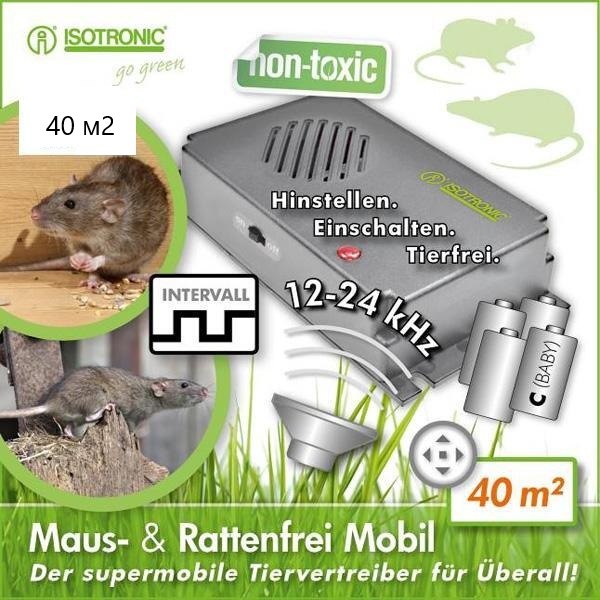Уред за борба с гризачи, като плъхове и мишки с помощта на звук. Запазва вредителите далеч, без да ги убива − хигиенично, щадящио околната среда, без химикали – лесно за употреба, минимална консумация на енергия. Уредът е мобилен с автономно захранване и може да бъде поставен там където е необходимо.