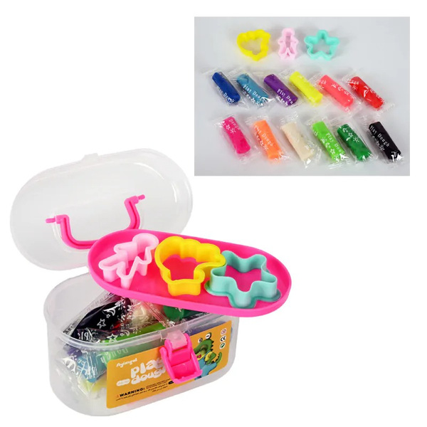 Моделин в ПВЦ куфарче /12 цвята и 3 фигурки/.