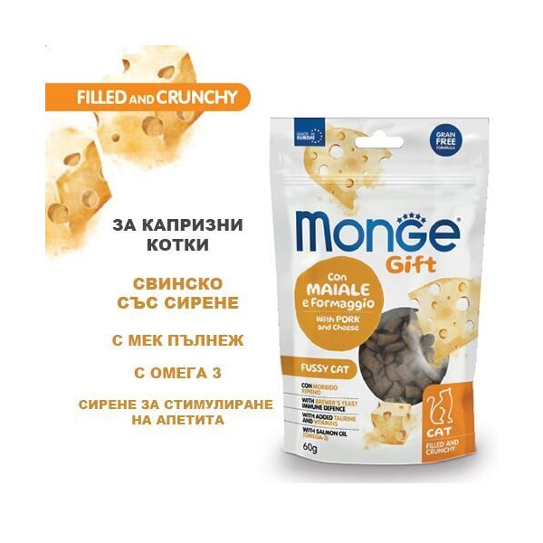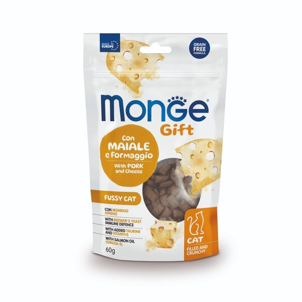 Включените функционални съставки, като бирена мая за защита на имунитета и масло от сьомга като източник на Омега-3, са резултат от изследване, направено в Италия от Monge.