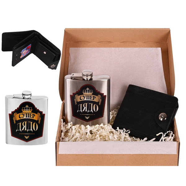 Мъжки подаръчен комплект "Специално за теб!" с кожен порфейл и манерка /7 oz = 207 милилитра/.