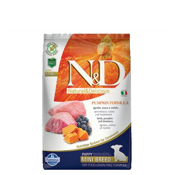 Осигурете нежна, но пълноценна грижа за вашето кученце от дребна порода с N&D Pumpkin Lamb & Blueberry Puppy Mini.