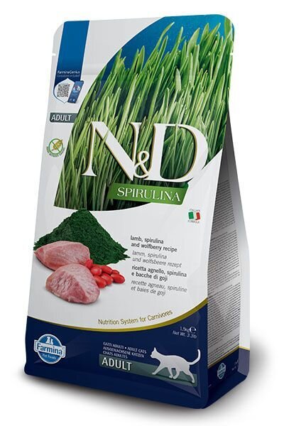 Подсилете здравето и виталността на вашата котка с N&D Spirulina Adult Lamb.