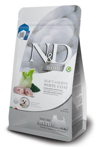 Запазете красотата и искрящата белота на козината на вашето куче от дребна порода с N&D White Sea Bass, Spirulina & Fennel.