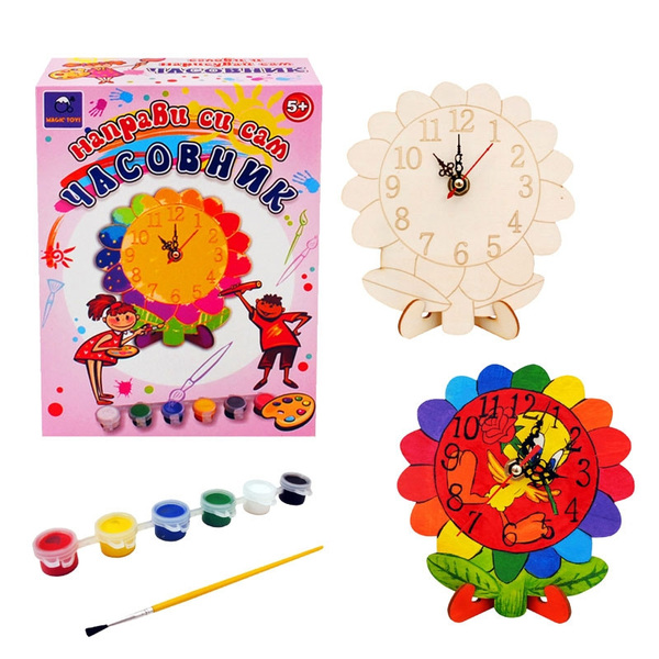 С комплекта "Направи си сам часовник", Вашето дете може да създаде свой авторски часовник - чудесно украшение за детската стая.