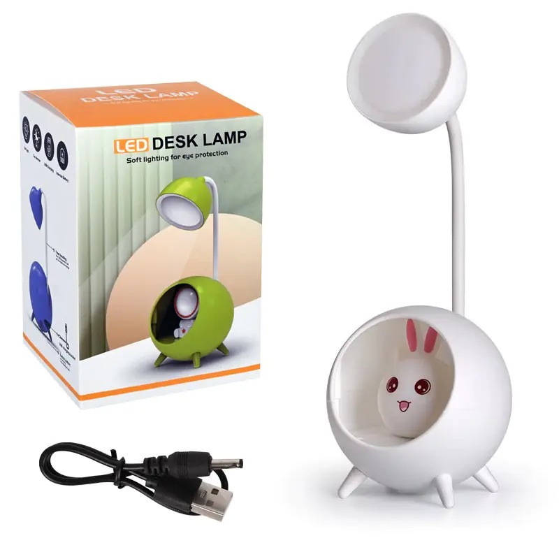 Настолна LED лампа "Зайче" с USB кабел за зареждане.