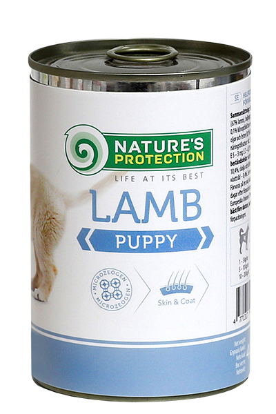 Меката храна Puppy Lamb съдържа накълцано натурално агнешко месо в мек бульон, обогатен с минерали.