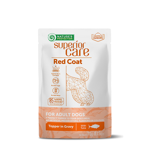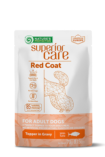 Пауч за израснали кучета с червена козина с риба тон – с грижа за храносмилателната система