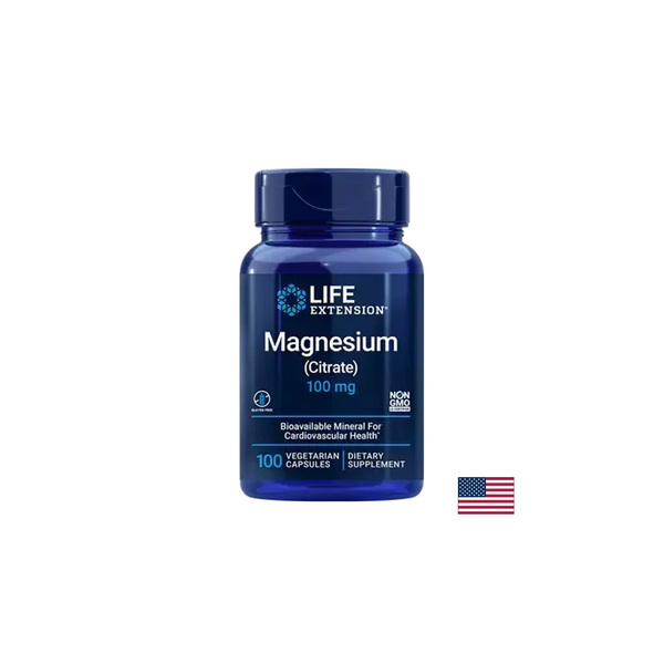 Magnesium (Citrate) / Магнезий (цитрат) 100 mg, 100 V капсули е хранителна добавка на Life Extension, САЩ. Формулата допринася за нормалното функциониране на сърдечно-съдовата система, както и за нормалното състояние на мускулите.