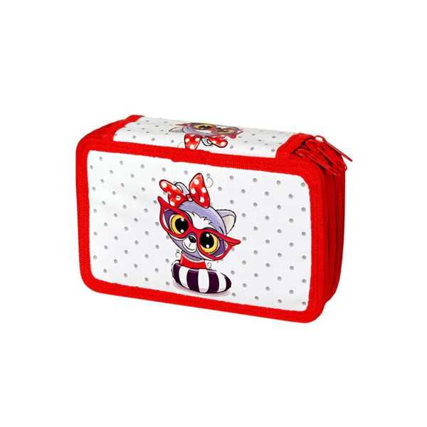 Празен несесер с 3 ципа. Разполага с три отделения за необходимите ученически принадлежности.
