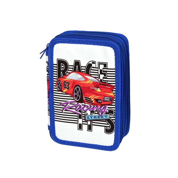 Празен несесер с 3 ципа. Разполага с три отделения за необходимите ученически принадлежности.