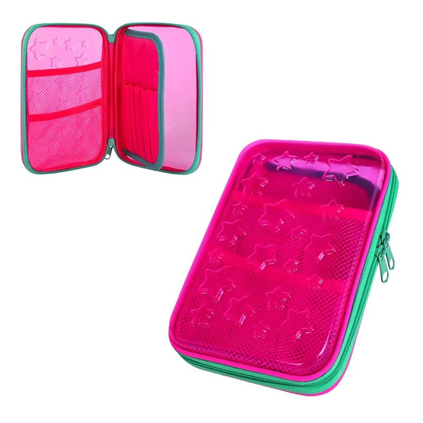 Несесер с атрактивен релеф, твърд прозрачен панел и едно основно отделение.