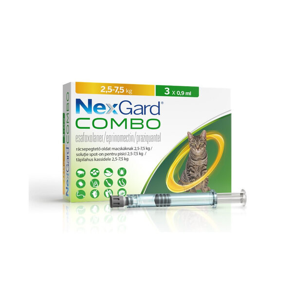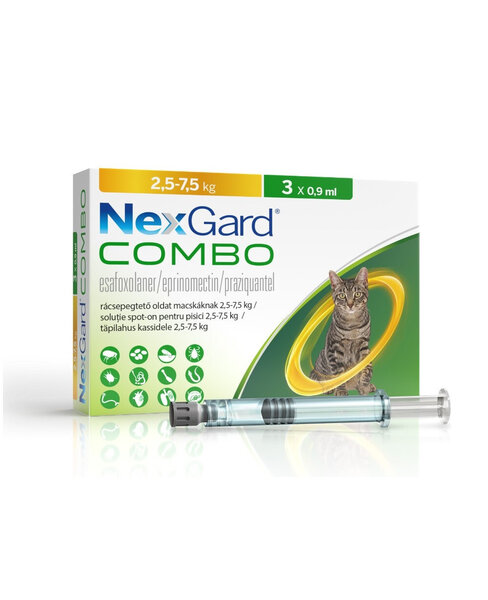 Инфекцията както от външни, така и от вътрешни паразити е често срещана при котките и се среща със значителна честота в световен мащаб. NexGard® COMBO осигурява ефикасност срещу двата вида паразити с формула за тройно действие – улесняваща спазването на препоръките за лечение от собствениците на котки. Приложението е лесно и за собствениците на котки с пипета във формата на спринцовка.