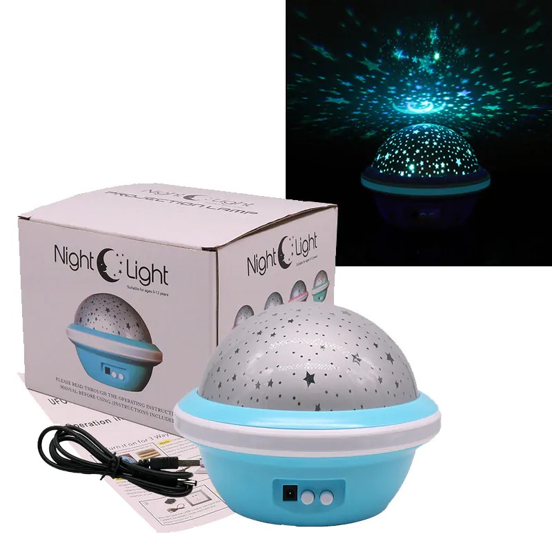 Нощна лампа - проектор на звездното небе, създава мистичен светлинен ефект, който прилича на нощното небе и осигурява релаксираща, успокояваща атмосфера. Лека и компактна с опростен дизай. Подходяща е за детска стая.