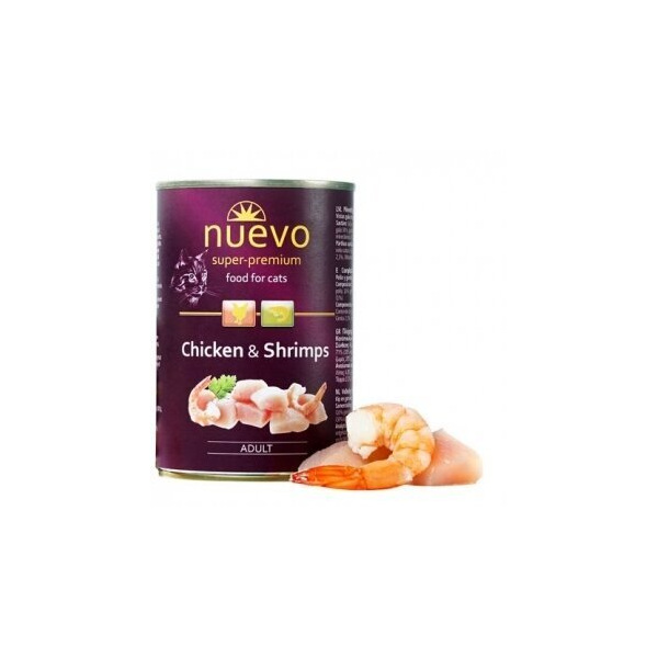Нуево "Пиле и Скариди" черпи сетивата на вашата котка с всички необходими нутриенти. В основата му е подбран пилешки протеин и деликатни скариди.