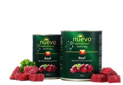 Характеристика на nuevo Beef е високото съдържание на месо от 72%, което съдържа много ценни протеини. Перфектно балансиран и пълен с оптимални нива на всички хранителни вещества, основни витамини и минерали.