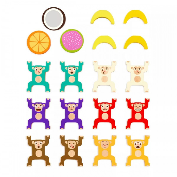 Образователен комплект, Battat, Дървени маймунки за подреждане, 19 части