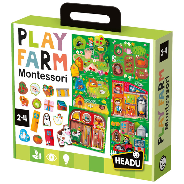 Образователен пъзел, Headu Монтесори, Ферма, 6 картонени подложки, 36 форми