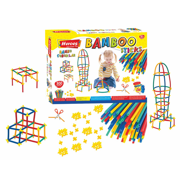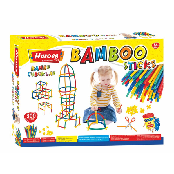Игралният комплект Бамбукови пръчки на Heroes включва 180 цветни пръчици и 120 свързващи елемента, които ще дадат широко поле на изява на креативността и въображението на детето. С помощта на ножица могат да се режат с желаният размер! Пред творчеството няма да има ограничения!