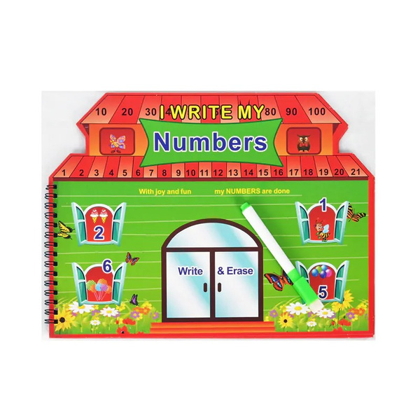 Образователна книжка "Уча се да пиша цифри" с твърди страници и триещ се маркер.