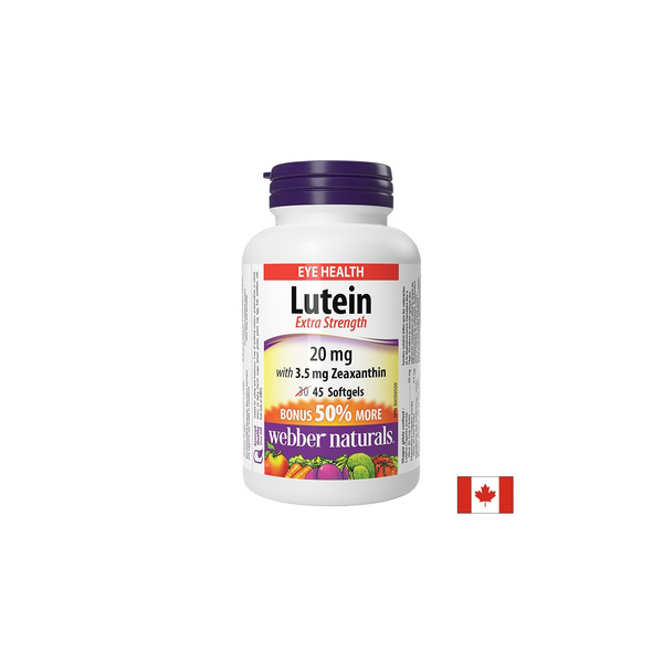 Lutein with Zeaxanthin Extra Strength на канадската марка Webber Naturals допринася за защитата на клетките от оксидативен стрес и нормалното състояние на зрението.
